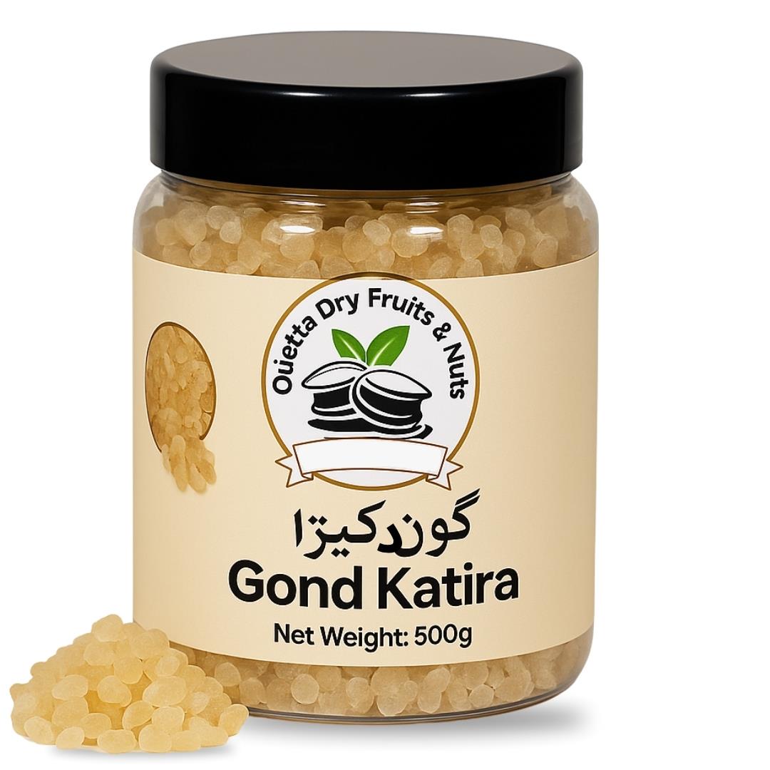 Gond Katira, also known as Tragacanth Gum, is a natural herbal resin prized for its cooling and medicinal properties. Extracted from the sap of specific plants, it helps boost energy, improve digestion, and strengthen the immune system. Ideal for use in summer drinks, desserts, and herbal remedies, Gond Katira is a versatile superfood that promotes overall well-being. 100% pure and chemical-free – a must-have from Quetta Dry Fruits & Nuts!