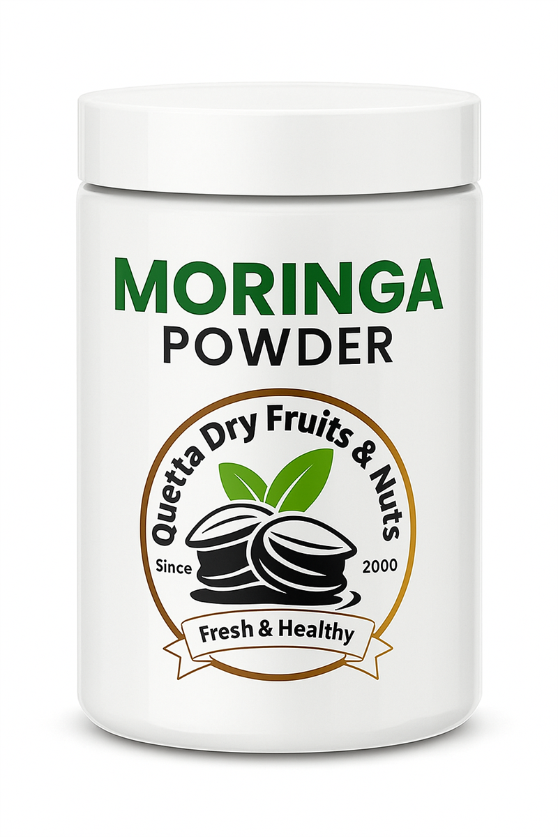 Quetta Dry Fruits Moringa Powder is a 100% pure, natural superfood made from dried Moringa leaves. Rich in vitamins, minerals, and antioxidants, it helps boost immunity, energy, and overall wellness. Ideal for smoothies, teas, and daily nutrition.